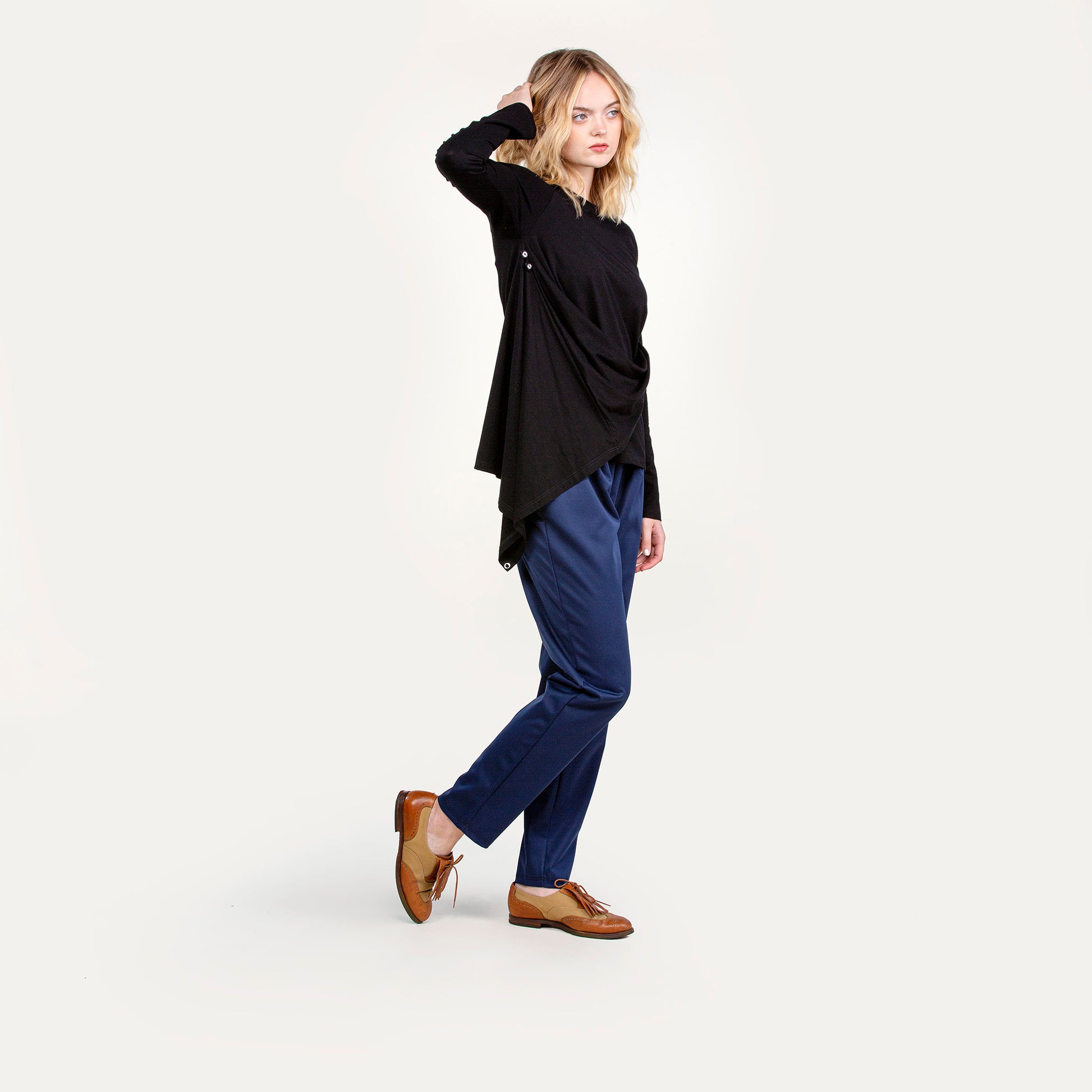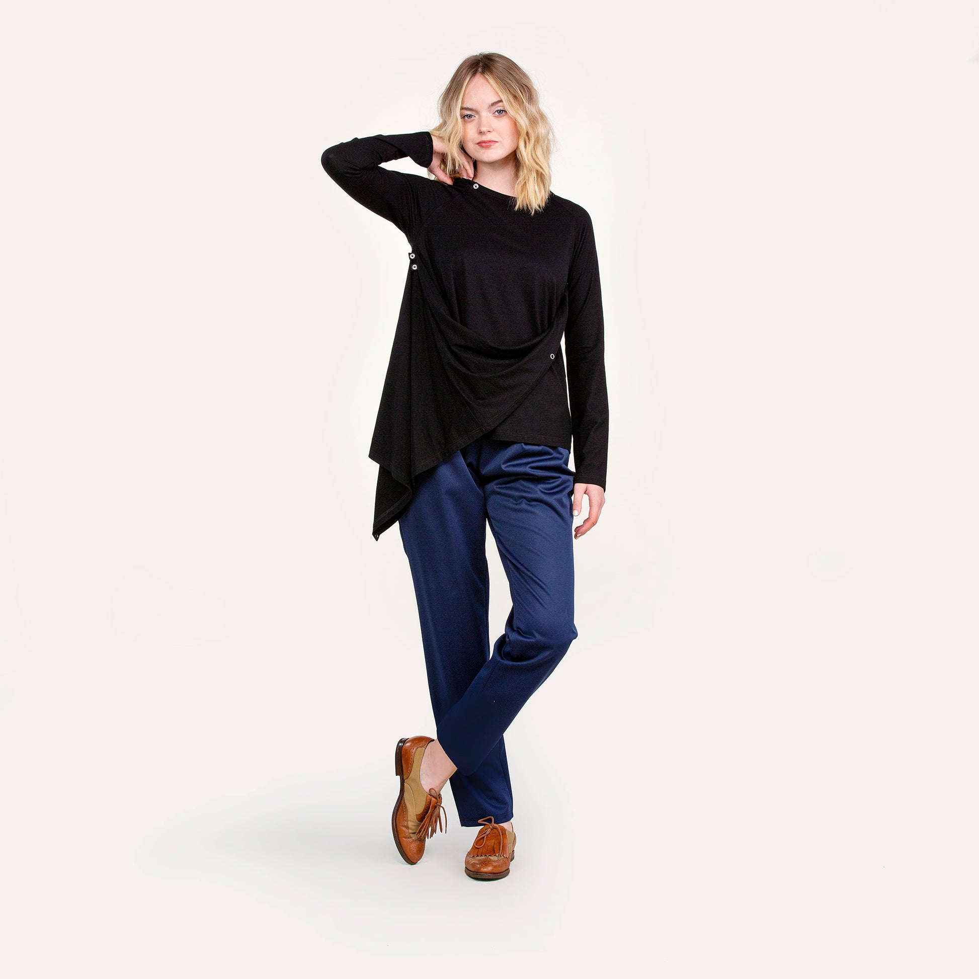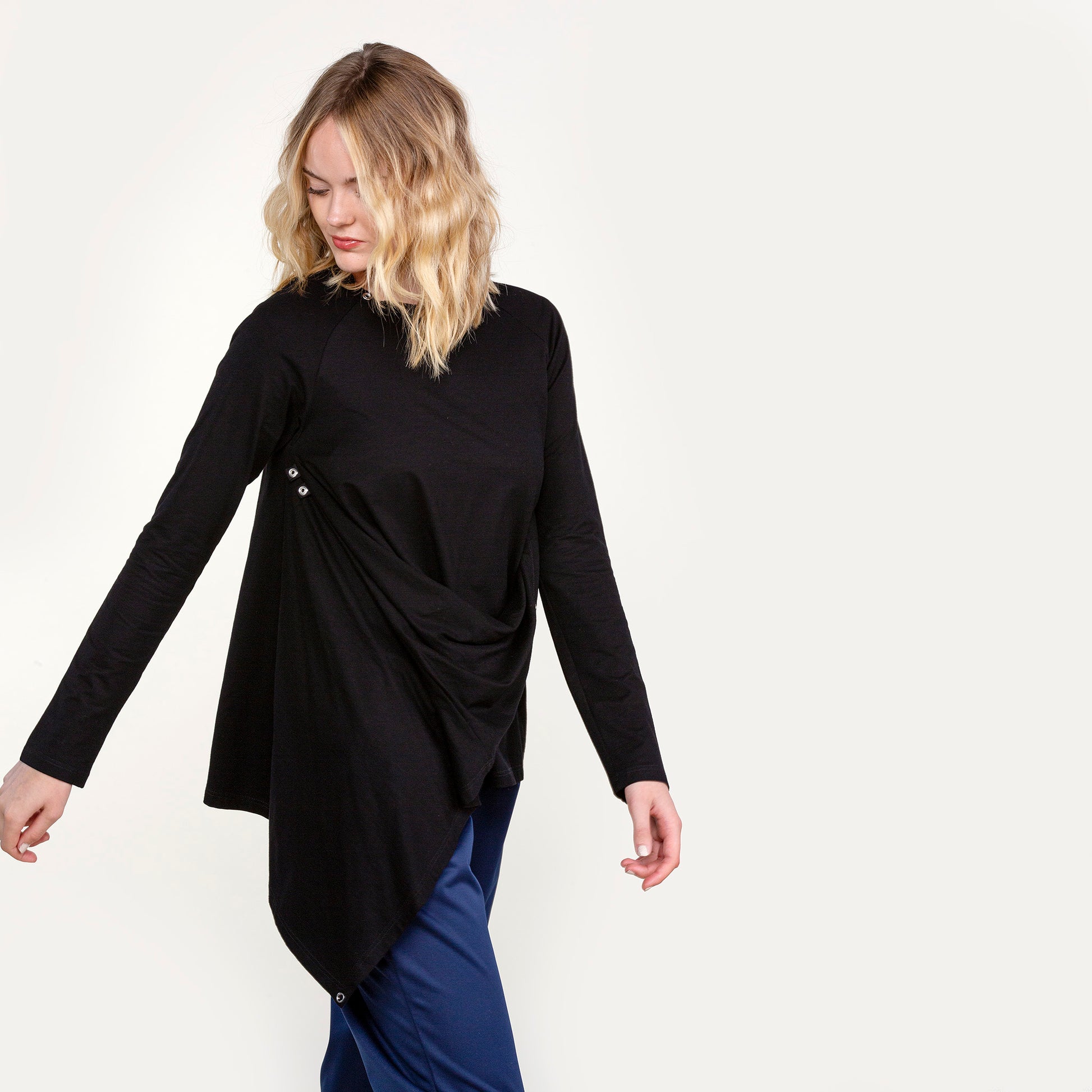 Vietto nepparipaita on muunneltava trikoopaita Suomessa valmistetusta bambu-lycra -neuloksesta. Epäsymmetrinen malli, jossa neppareita kaula-aukon ympärillä, kainaloissa ja vastinkappaleet liepeitten päissä. Vaatteen voi pukea todella monella eri tavalla! Siihen saa hienoja valuvia muotoja ja voluumia kiinnittelemällä neppareita eri tavoin.