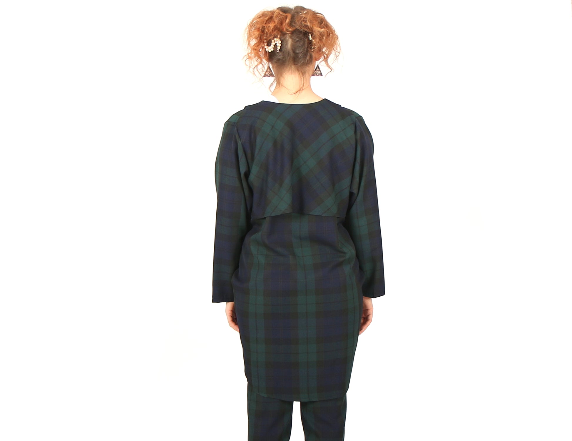 Vietto ruutujakku on rento, ruudullinen takki, jossa on nappikiinnitys ja sivusaumoissa reilut taskut. Takana on vinoon leikattu keeppiosa.