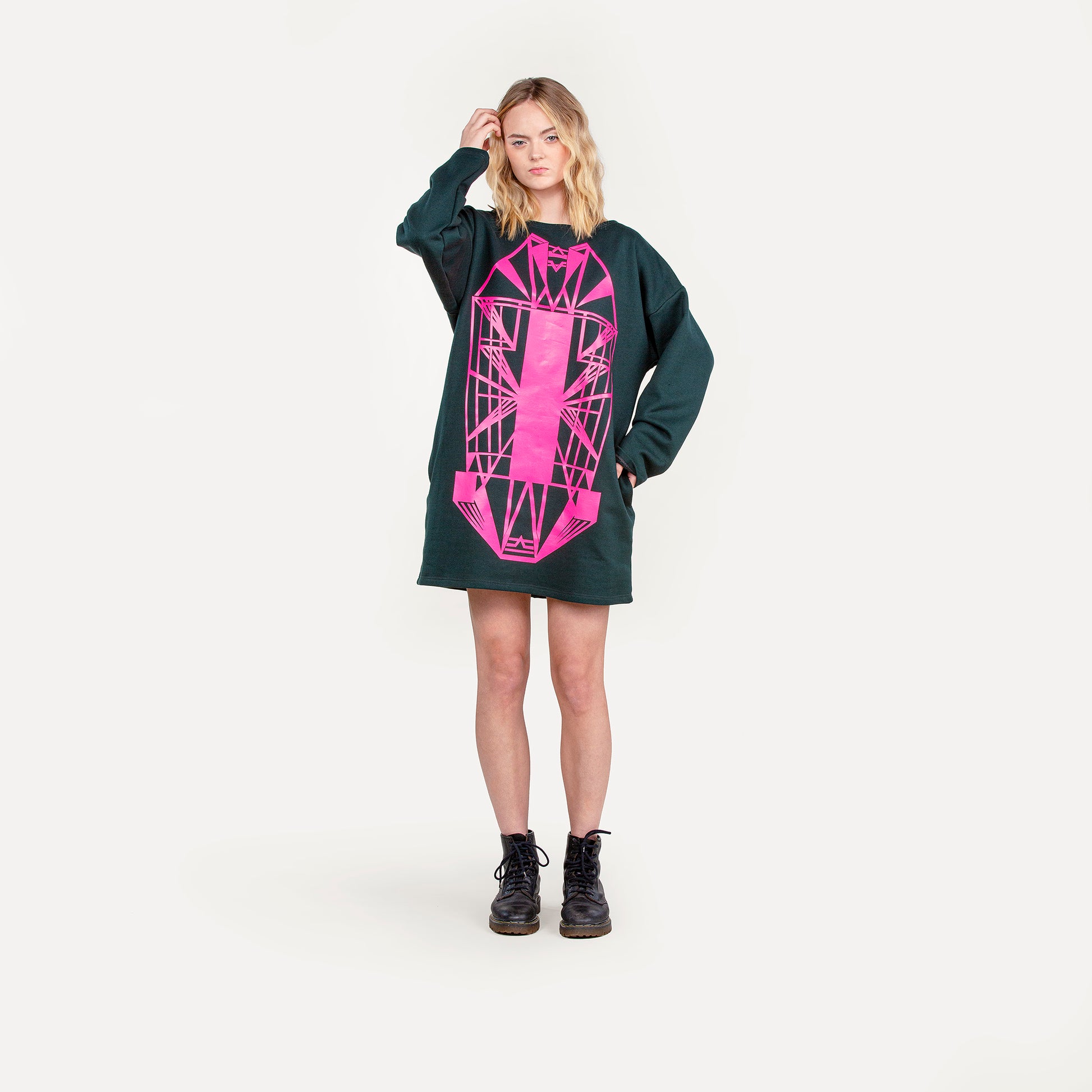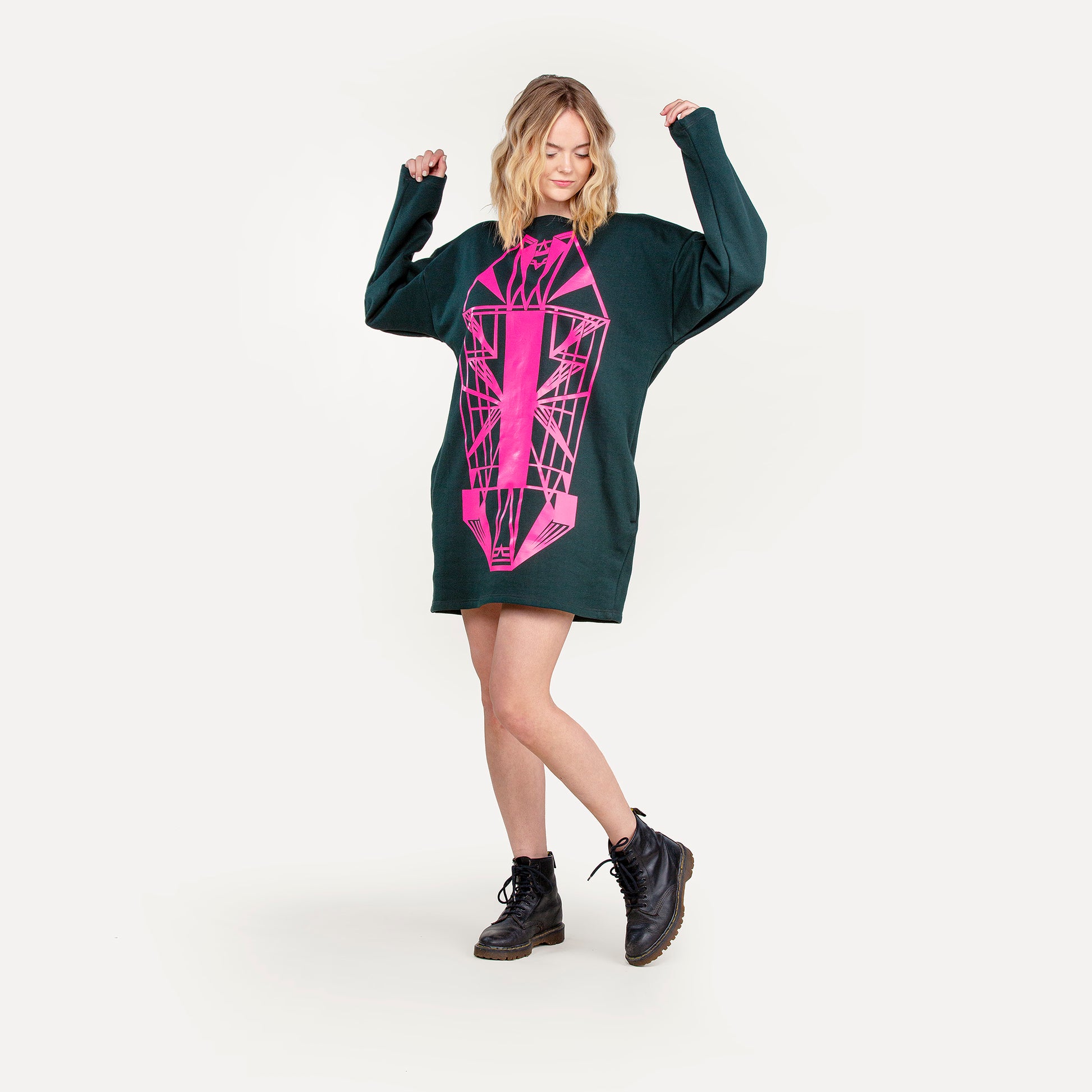 Vietto Urban Art deco mekko vihreä & neon pinkki