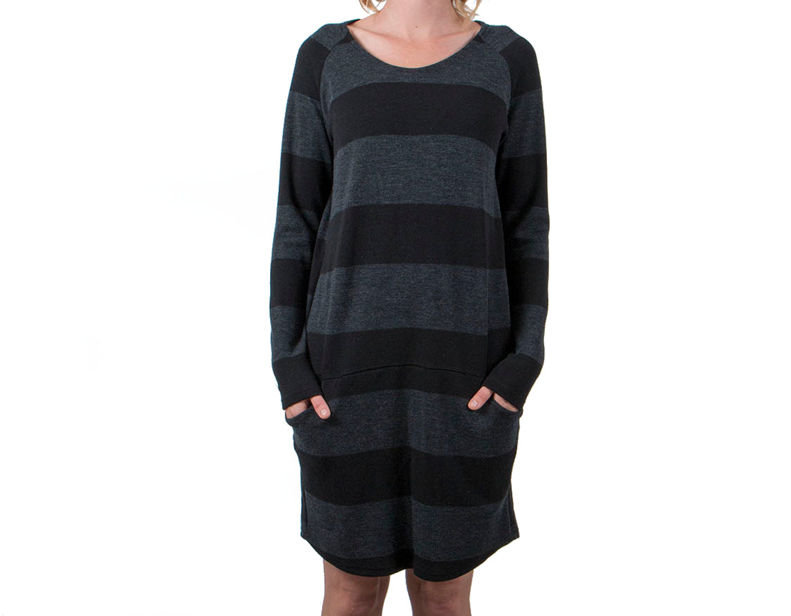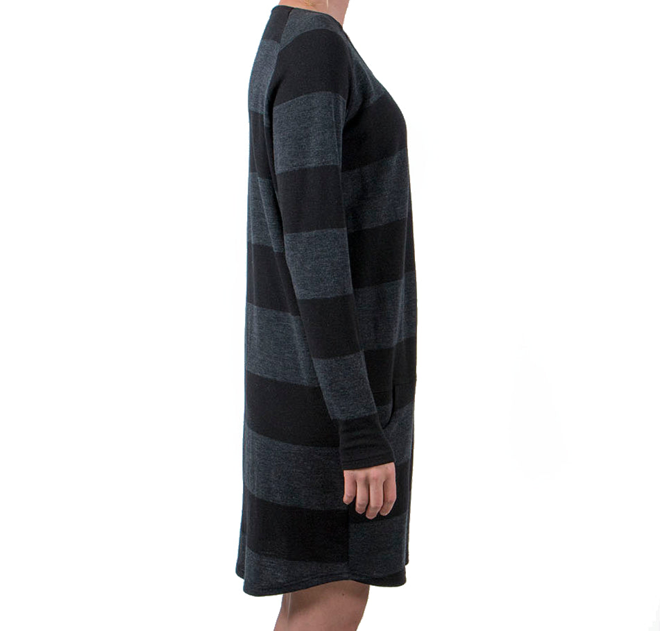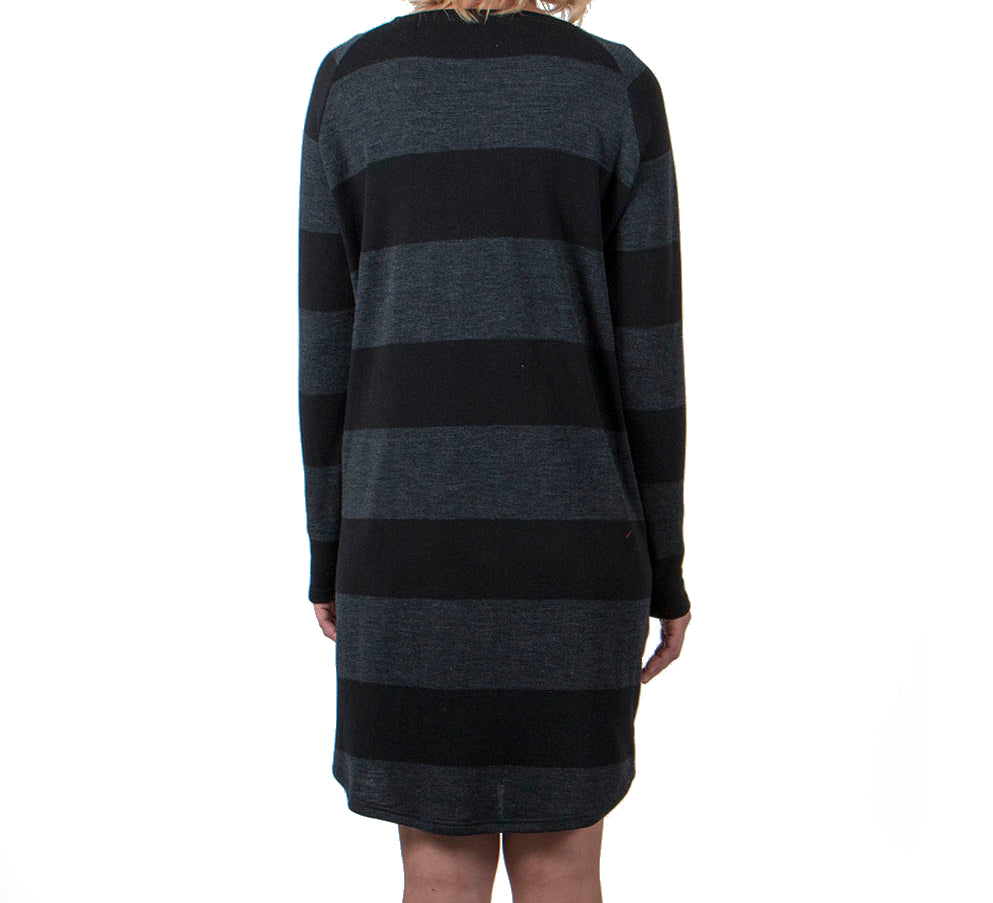 Vietto löysä raidallinen merinovillainen neulemekko on super ihana ja mukava mekko, joka on valmistettu Suomessa neulotusta 100% merinovillasta. Rento leikkaus, pitkät hihat ja taskut edessä. Hieman kaareva helma.