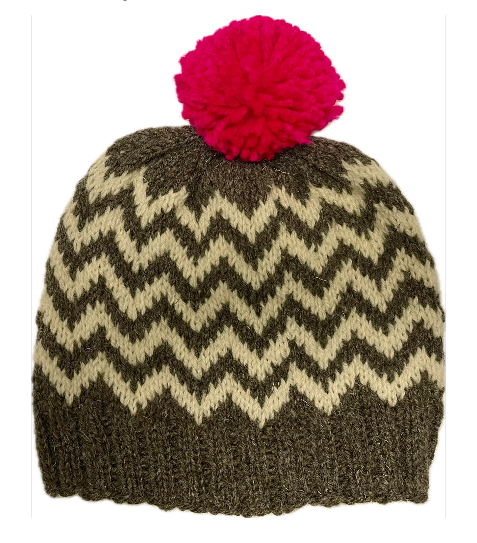 Vietto Siksak pipo on ihanan lämmin käsinneulottu pipo. Pipo on kirjoneuletta jotain se on tavallista neulosta paksumpi. Pipossa on kontrastivärinen tupsu joka on irroitettava.
