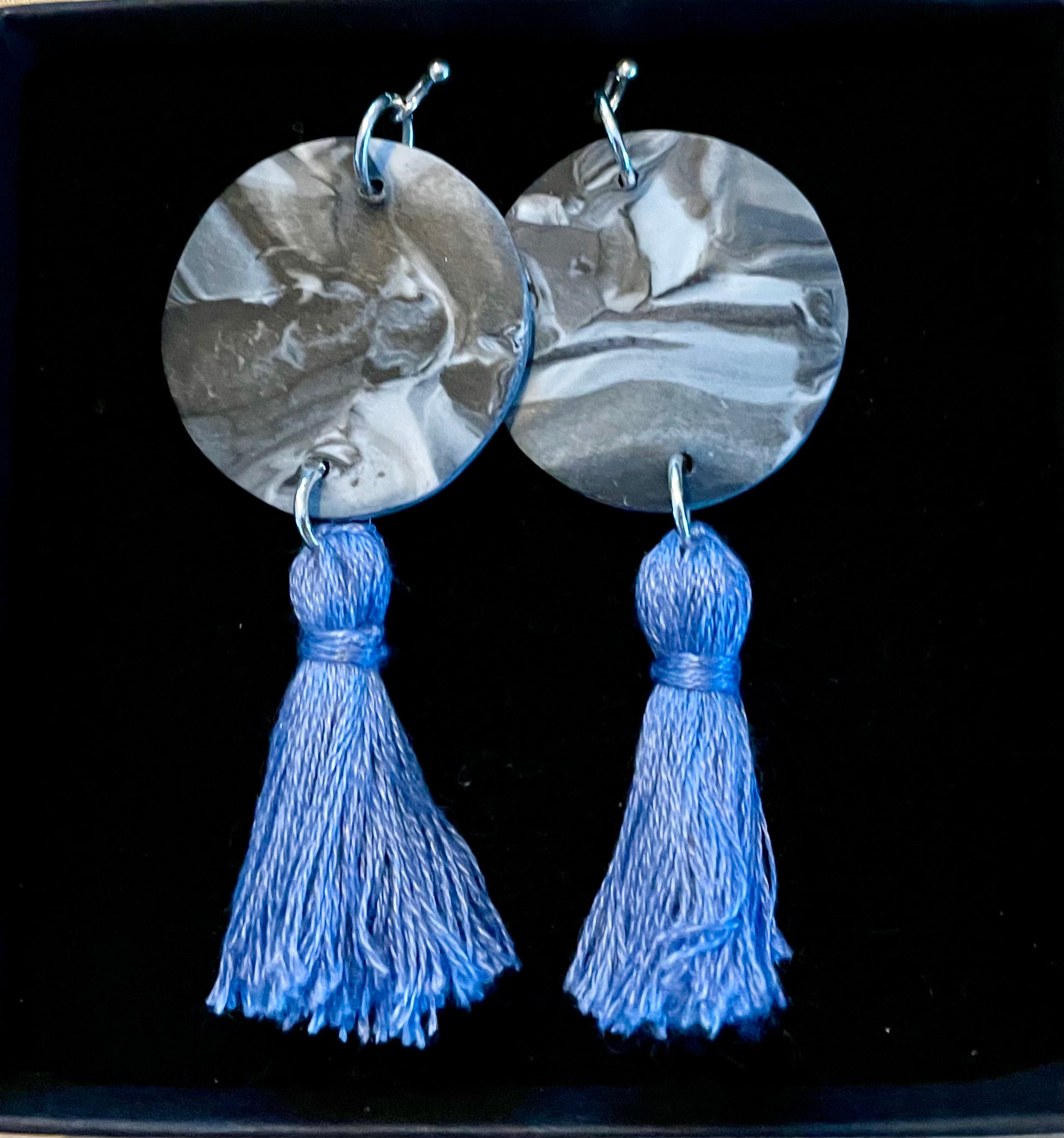 Vietto tupsukorvakorut ovat uniikit hauskat riippuvat korvakorut, jotka on tehty polymeerimassasta ja puuvillalangasta. Metalliosat ovat hopeoituja ja nikkelittömiä. Korvisten pituus on n. 8 cm.