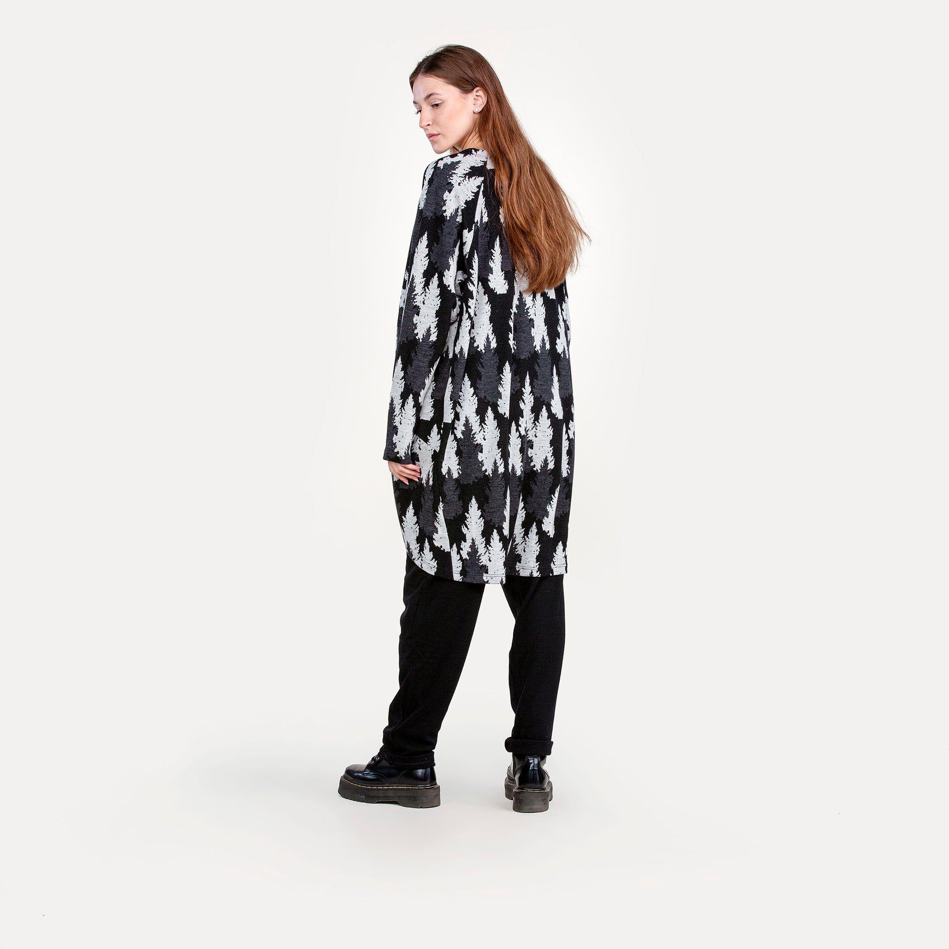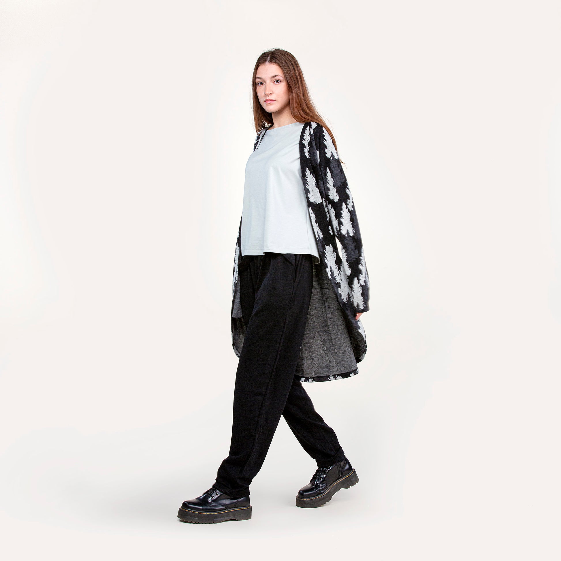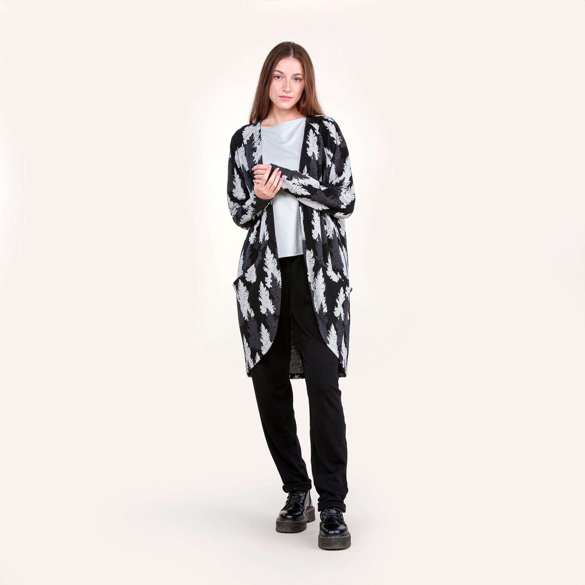 Vietto Korpi merinovillainen taskuneuletakki on naisten ihana lämmin neuletakki Vieton omasta Korpi-kuosista. Pehmoinen ja erittäin lämmin neuletakki on tehty Suomessa neulotusta 100% mulesing vapaasta merinovillaneuloksesta. Takissa on rento leikkaus ja edessä isot taskut. Reilut etukappaleet voi kietoa ympärille ja laittaa esim vyöllä kiinni. Materiaali on joustavaa, eikä kutita. Korpi-kuosi on Vieton oma kuosi ja se on saanut innoituksensa taigan kuusimetsien hämyisestä tunnelmasta.