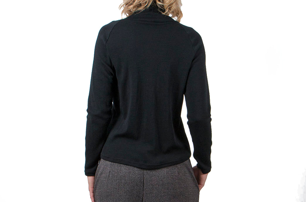 Pitkähihainen poolopaita 100% mulesing vapaasta merinovillasta. Hieman kaarrettu helma. Neulos on tehty Orivedellä.