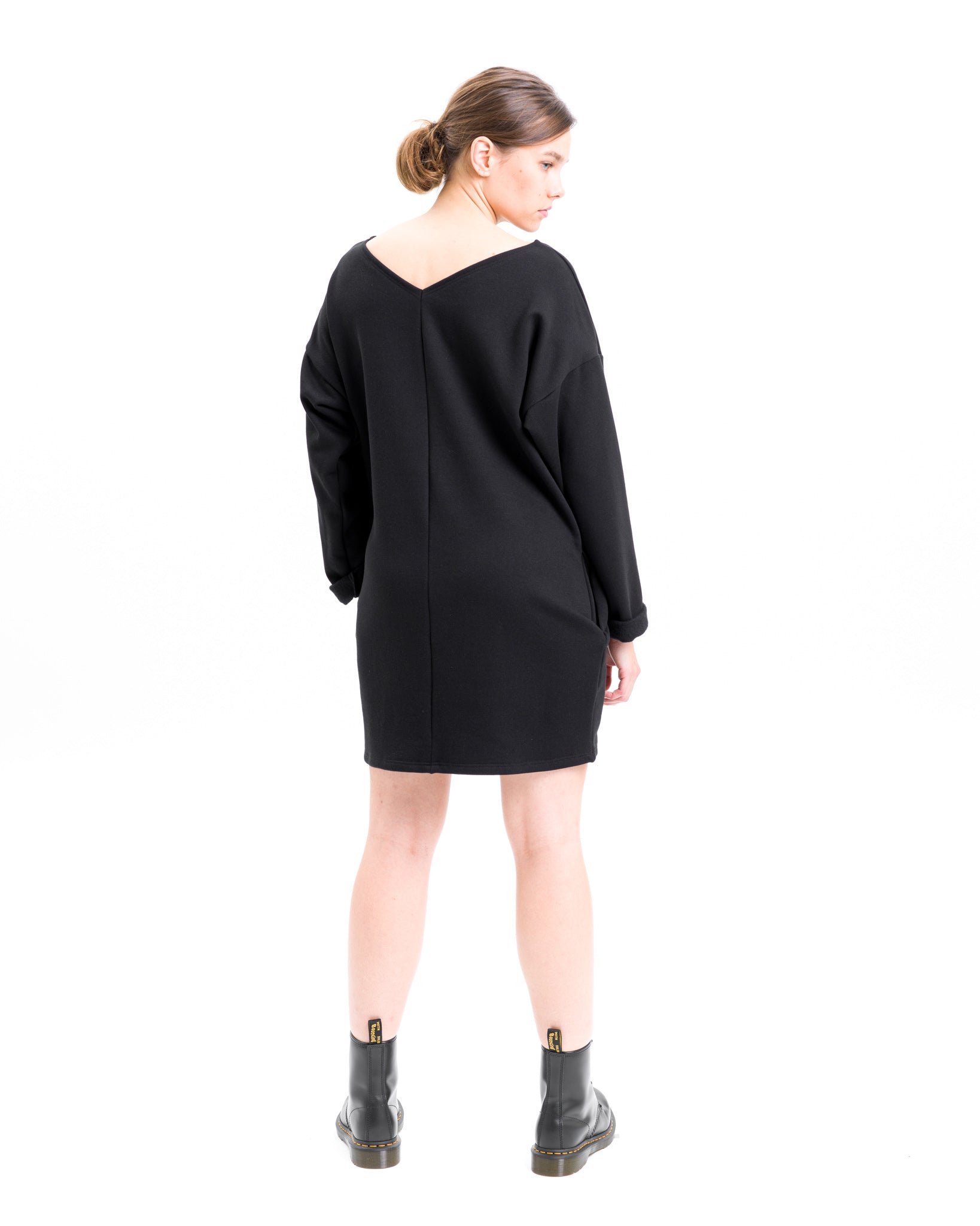 Rento mekko Suomessa valmistetusta paksusta collegeneuloksesta, joka on suomalaisen tekstiiliteollisuuden ylijäämämateriaalia. Mukava, pitkähihainen malli jossa sivusaumoissa taskut. Edessä iso printti, joka on saanut inspiraationsa Art Decosta. Printti on tehty kalvotekniikalla joka mahdollistaa värikylläiset värit. Hihat ovat ylipitkät ja ne näyttävät kivalta käärittyinä. Pääntie on takana v:n muotoinen.