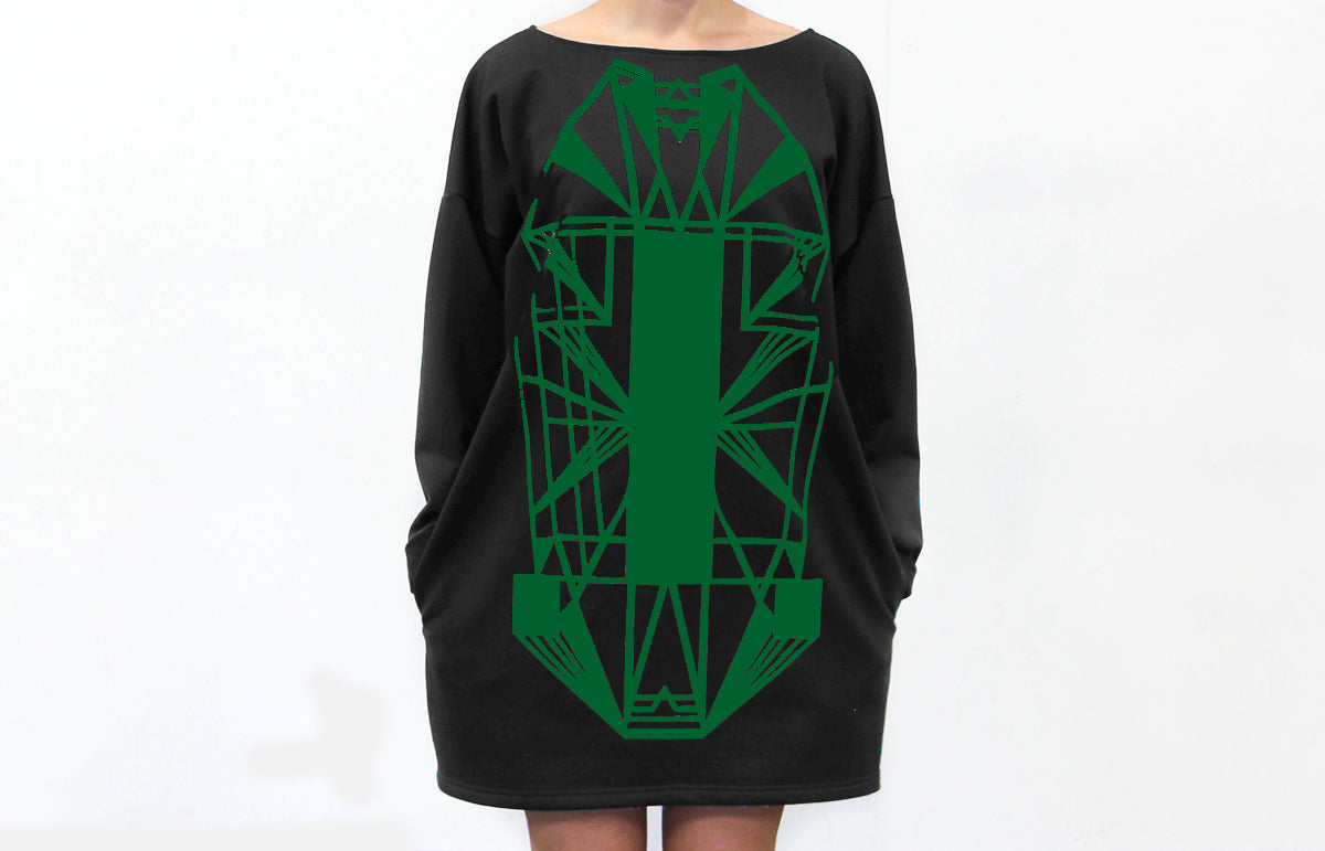Vietto Urban Art deco mekko musta & vihreä