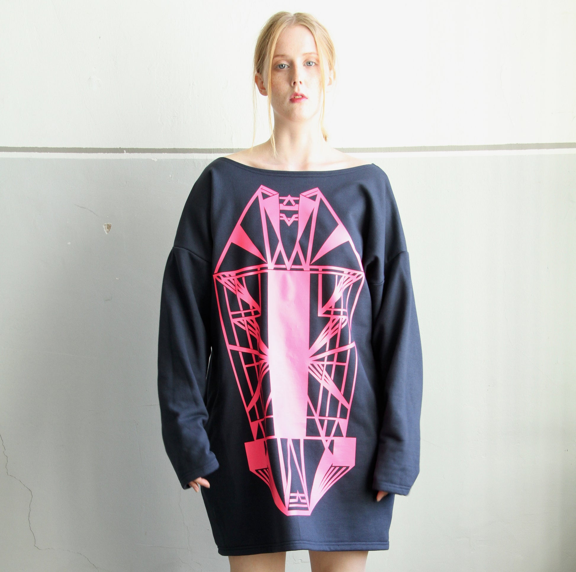 Rento mekko Suomessa valmistetusta paksusta collegeneuloksesta, joka on suomalaisen tekstiiliteollisuuden ylijäämämateriaalia. Mukava, pitkähihainen malli jossa sivusaumoissa taskut. Edessä iso printti, joka on saanut inspiraationsa Art Decosta. Printti on tehty kalvotekniikalla joka mahdollistaa värikylläiset värit. Hihat ovat ylipitkät ja ne näyttävät kivalta käärittyinä. Pääntie on takana v:n muotoinen.